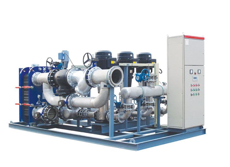 換熱機組的構(gòu)成及工作原理換熱機組是集成板式換熱器、循環(huán)泵、補水泵、電控柜、溫控裝置、各種傳感器、熱量計、溫度計、壓力表、管路和閥1門等于- -體,并組裝在公共底座上的熱交換成套組合裝置。一次側(cè)熱源(蒸汽、高溫水等),經(jīng)過除污器過濾后,進入板式換熱器與二次側(cè)循環(huán)水進行熱交換,然后返回一次側(cè)回水管網(wǎng)。二次側(cè)循環(huán)水經(jīng)過除污器過濾、循環(huán)泵加壓后,進入板式換熱器與一次側(cè)熱源進行熱交換,然后進入二次側(cè)供水管...